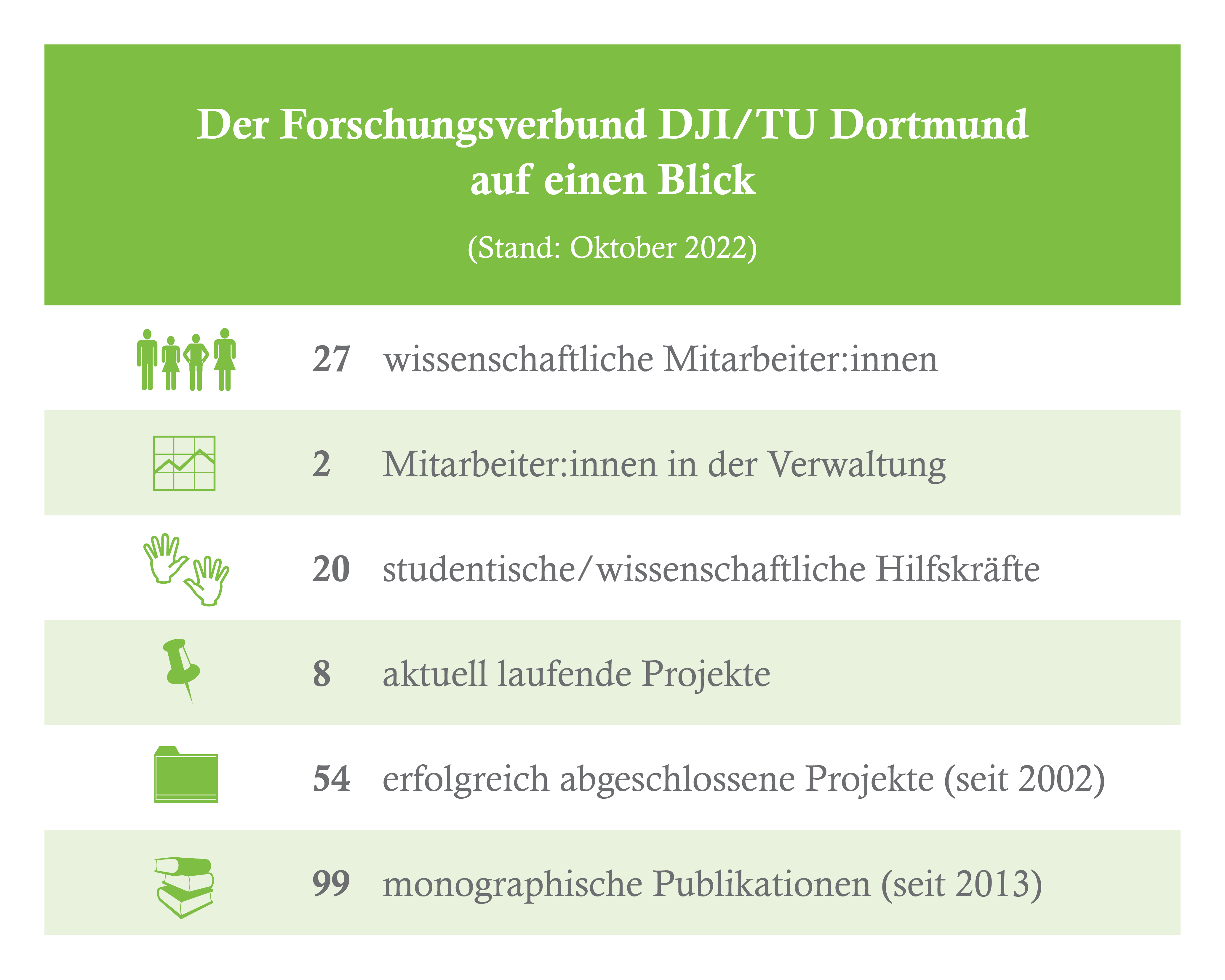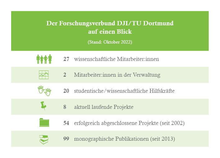 Der Forschungsverbund wurde im September 2002 als eine Kooperation zwischen dem Deutschen Jugendinstitut e.V. (DJI) in München und der Universität Dortmund mit dem Standort Dortmund gegründet. Vor diesem Hintergrund blickt er in diesen Tagen auf eine 20-jährige erfolgreiche Geschichte der Sozial-, Bildungs- und Jugendhilfeforschung sowie der Politikberatung von Bund, Ländern, Gemeinden sowie zivilgesellschaftlichen Organisationen zurück.