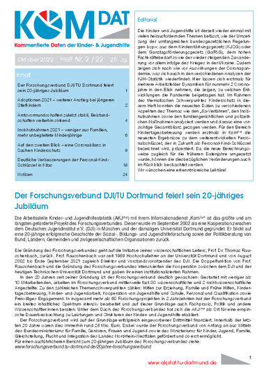 KomDat Jugendhilfe Heft 2/2022: eine vorläufige Coronabilanz in Sachen Kinderschutz und neueste Ergebnisse zum weiterentwickelten Personalschlüssel für die Kindertagesbetreuung