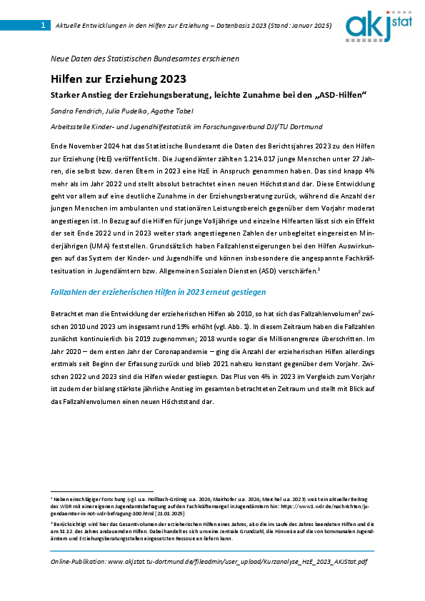 Ende 2024 hat das Statistische Bundesamt die Daten des Berichtsjahres 2023 zu den Hilfen zur Erziehung (HzE) veröffentlicht.