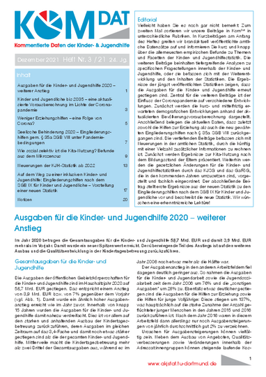 Die neue KomDat-Ausgabe nimmt in mehreren Beiträgen die Veränderungen in der Kinder- und Jugendhilfestatistik (KJH-Statistik) sowie angrenzender Statistiken in den Blick und befasst sich darüber hinaus mit den jüngst veröffentlichten Daten für die Kinder- und Jugendhilfe.