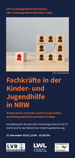In der Kooperationsveranstaltung am 27. November 2025 möchten wir gemeinsam mit dem LVR/LWL auf die Ergebnisse zu Arbeitsmarkt, Personalausfällen, Ausbildungspotenzialen und Quereinstiegen in Bezug auf die Kindertagesbetreuung in NRW blicken.